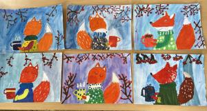 Děti z 1.A se naučily velmi obtížnou básničku Tři vrabčáci. Frantíka, Edu a Honzíka uprostřed pak také vytvořily.