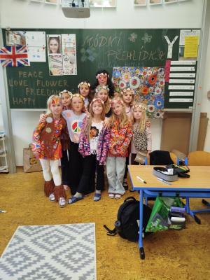 Výuka začala přehlídkou kostýmů ve stylu „šedesátek“.