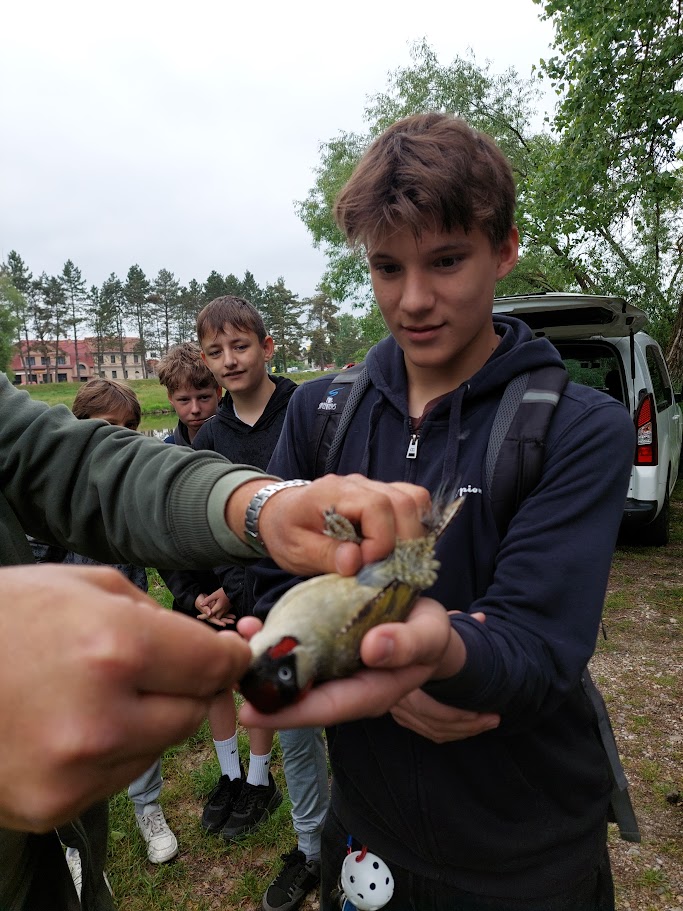 Hned po příjezdu nás přivítal a seznámil nás s tím, proč se ptáci kroužkují, jaké údaje se zaznamenávají a co všechno se díky tomu dá zjistit o jejich životě. Žáci si mohli prohlédnout různé druhy sítí, do kterých se ptáci šetrně chytají, a také si zblízka prohlédnout brhlíka lesního, žlunu zelenou nebo pěnici černohlavou. Největším zážitkem bylo samotné kroužkování. Někteří žáci si mohli pod dohledem odborníka sami vyzkoušet zaznamenání údajů – váhy, délky křídel či druhu, a šetrné vypouštění ptáků zpět do přírody. V průběhu exkurze bylo odchyceno celkem 13 jedinců, a to z 9 různých druhů.