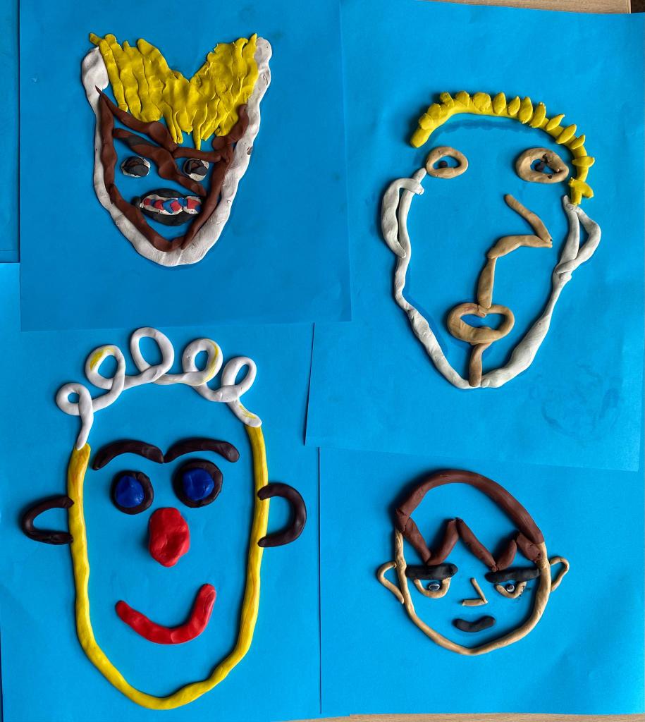 Žáci 5. B si v hodině pracovních činností vyzkoušeli práci s modelínou – tentokrát vytvářeli lidské obličeje a jejich výrazy.