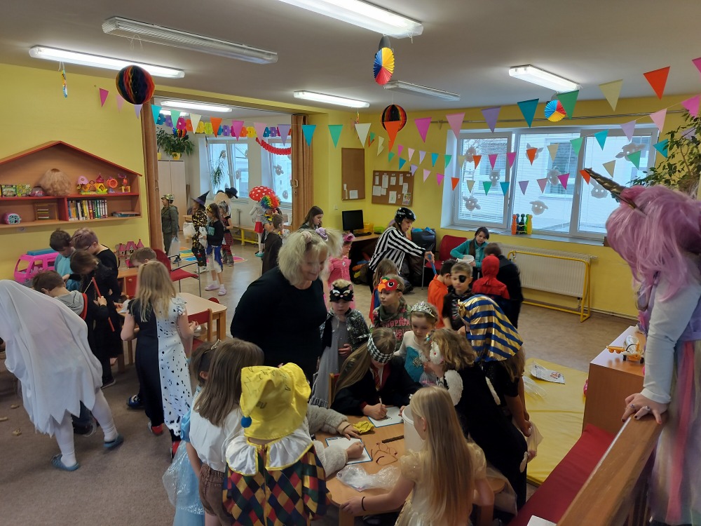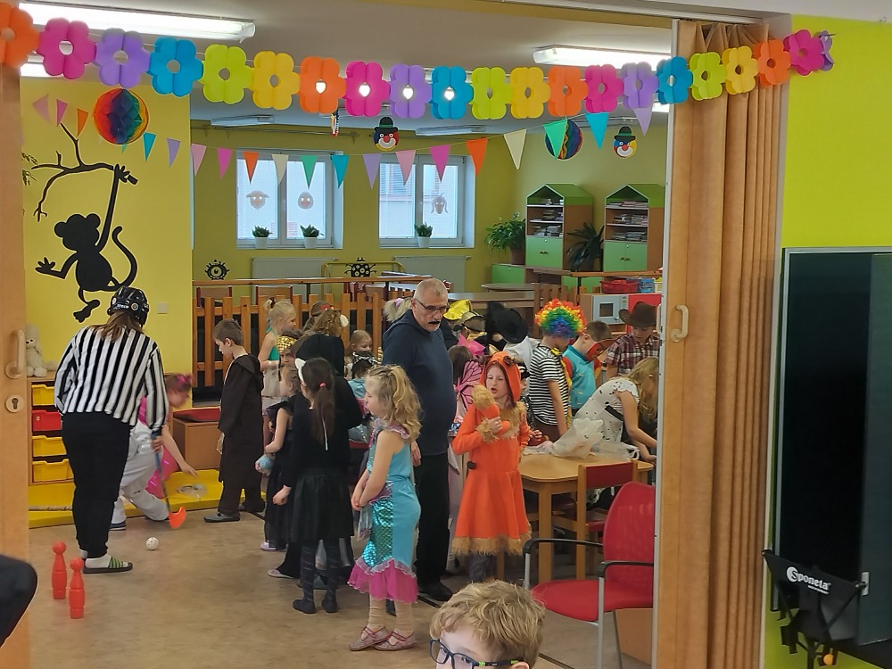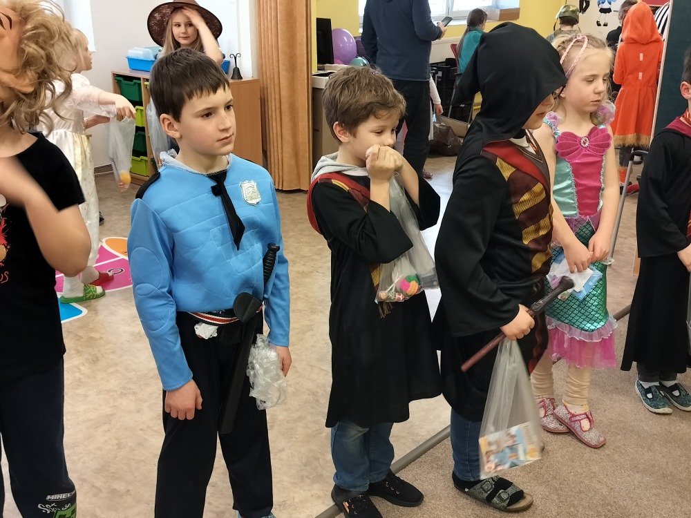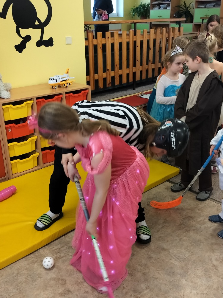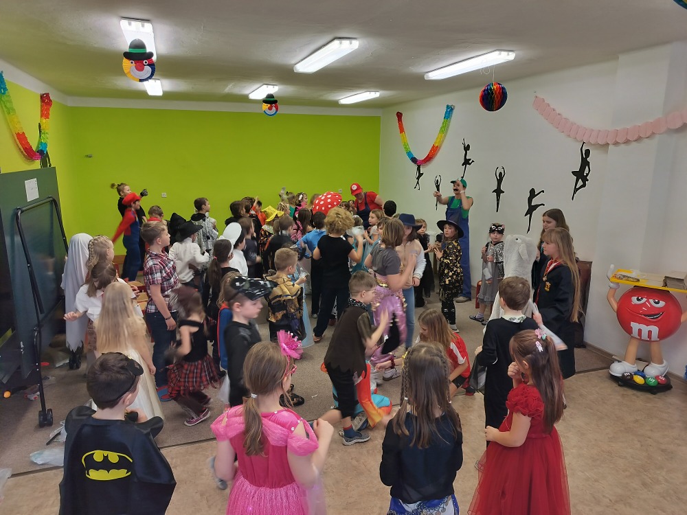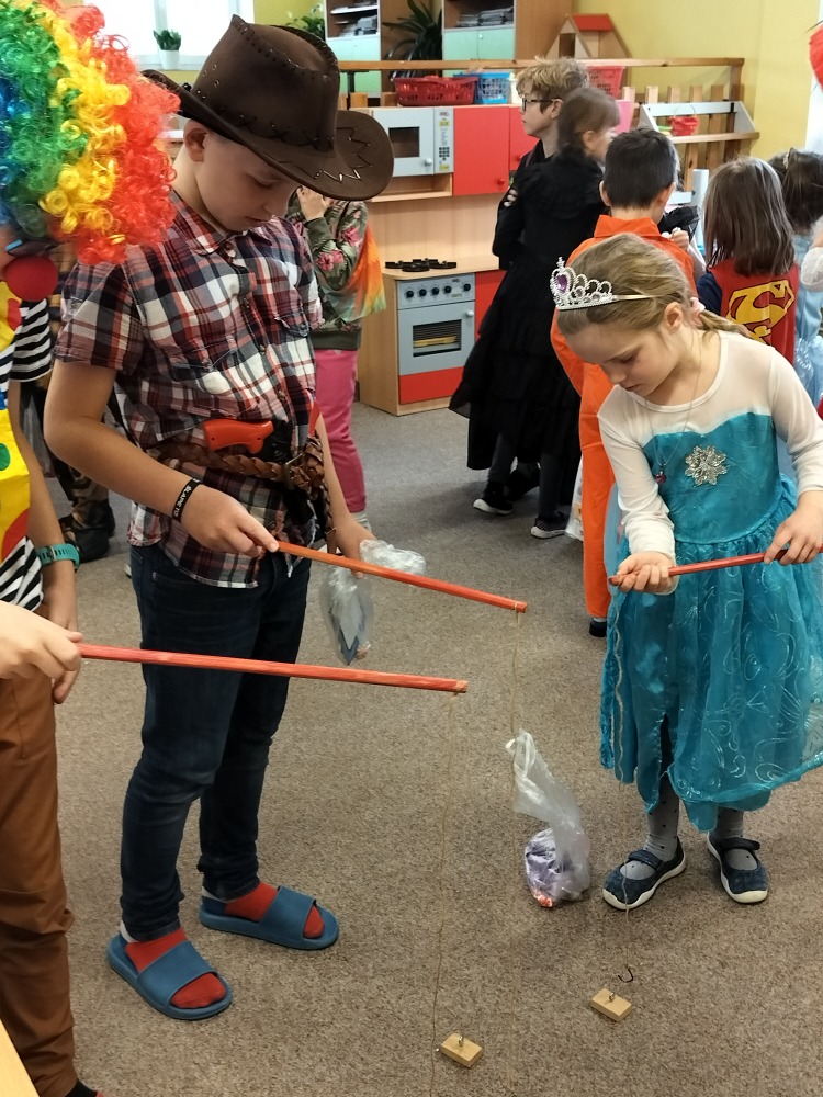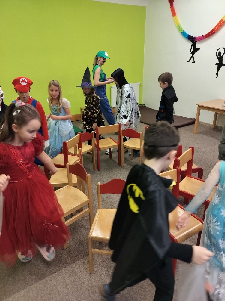 Velká herna se proměnila v taneční sál a maskami se to jen hemžilo. Nechyběli superhrdinové, princezny, rytíři, policisté, sportovci a další pohádkové bytosti. Na programu byly různé soutěže, za které dostávaly děti sladkou odměnu.
