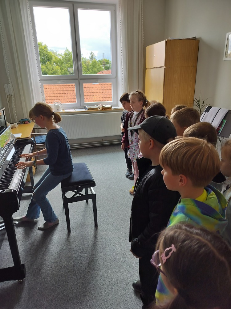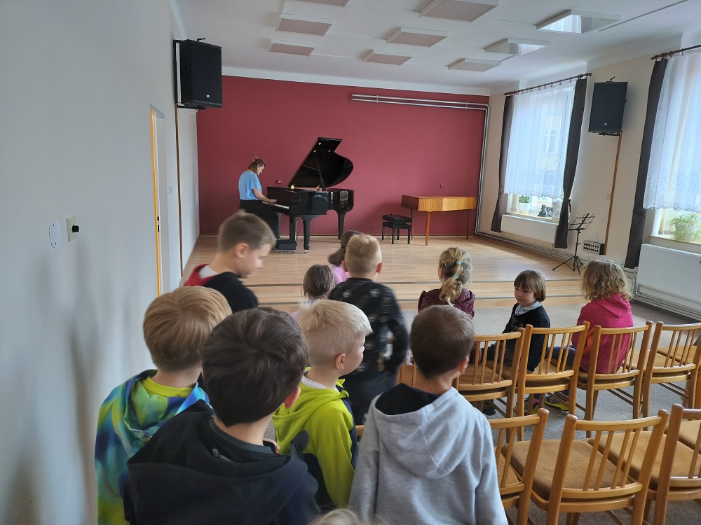 Během této návštěvy jim paní učitelky zahrály na různé hudební nástroje. Zblízka si je tak mohli prohlédnout a poslechnout krátké skladby.