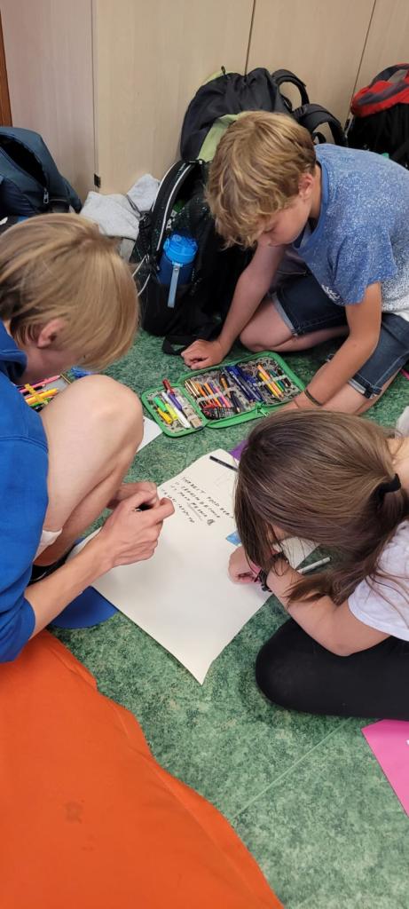 V podvečer jsme měli pořádné dobrodružství plné jídla. Dělali jsme ve skupinách plakáty na různé druhy jídel v různých zemích.