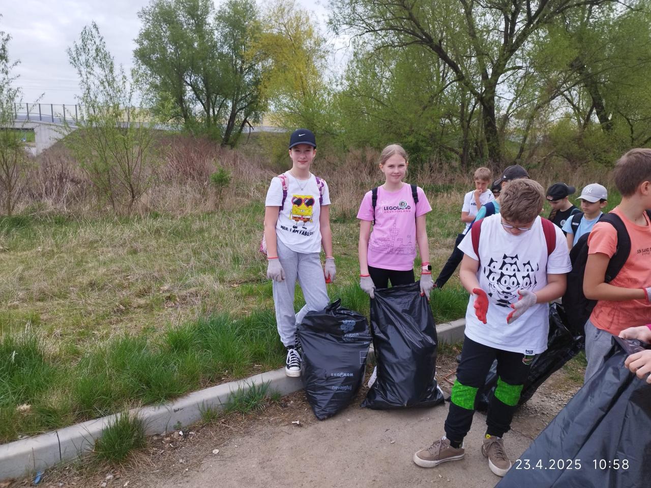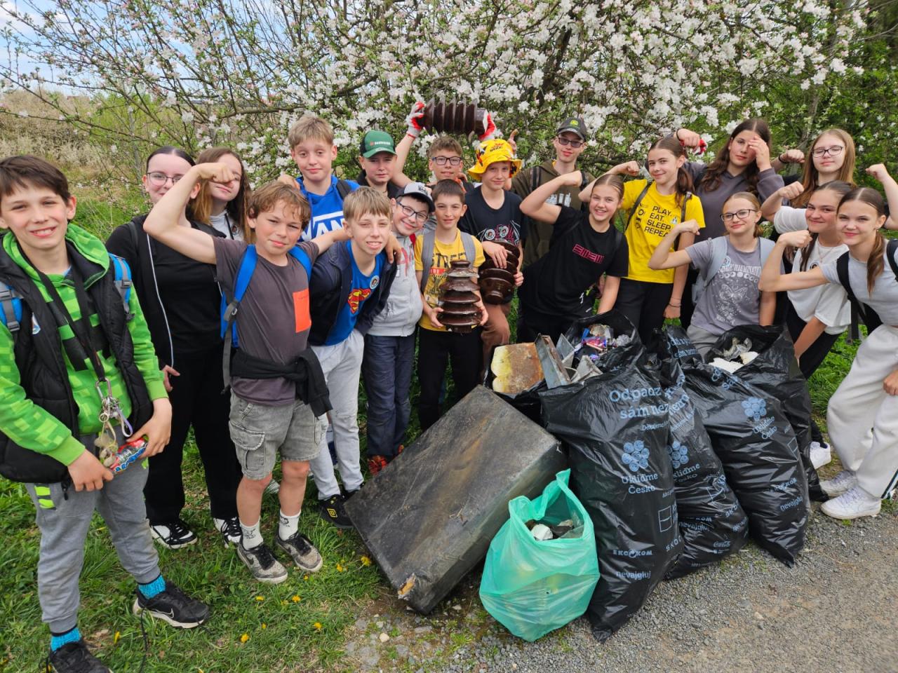 Třídy se rozdělily a vyrazily na různé strany města, aby stihly uklidit co nejvíce míst. Na některých místech bylo překvapivě čisto (Svákov, Nový rybník), jinde ale děti objevily opravdu hodně nepořádku. Společně se jim za dopoledne podařilo nasbírat téměř 20 pytlů odpadu!