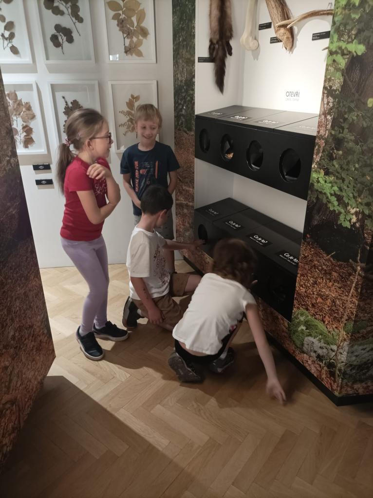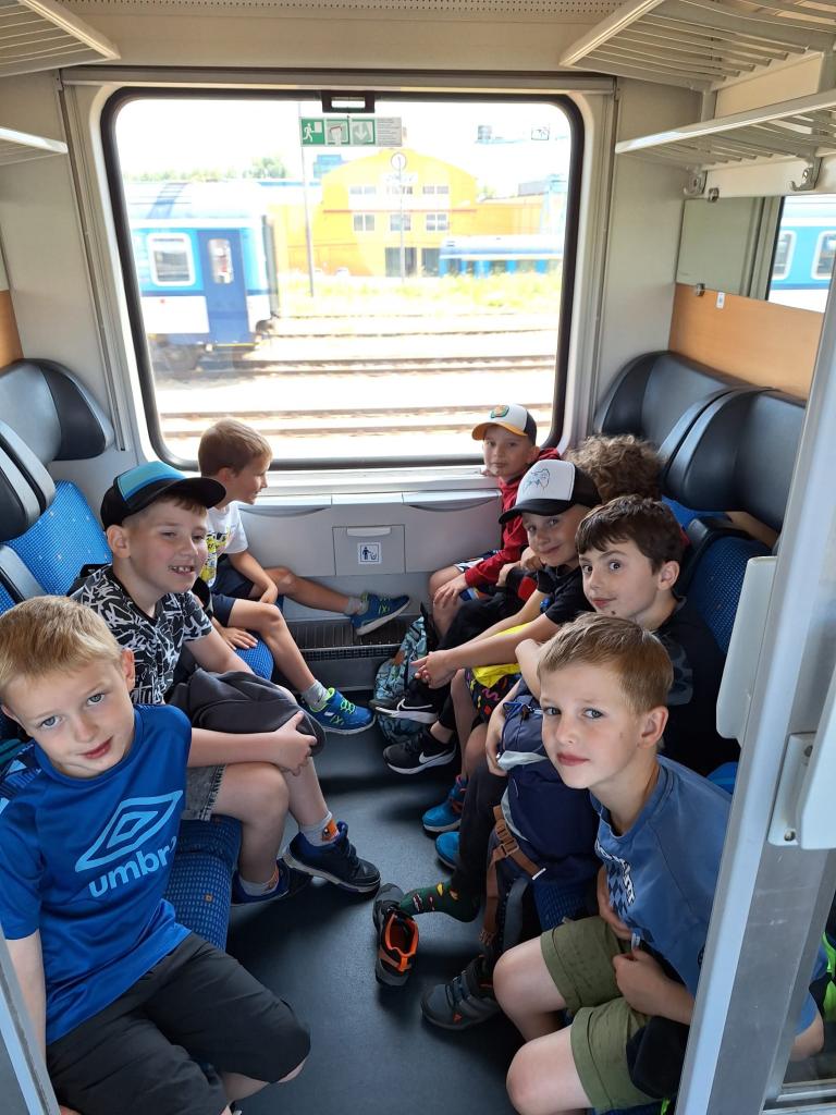 Nejdříve bylo potřeba dojít na nádraží. A pak hurá rychlíkem do Českých Budějovic. Některé děti jely vlakem poprvé v životě. Nová přirodovědná expozice v Jihočeském muzeu nám ukázala spoustu zajímavostí. Je interaktivní a každý, kdo chtěl zkoumat, měl zde možnost. Dalším cílem výpravy bylo náměstí, kašna, okolí věže, samozřejmě na závěr zmrzlina nebo tříšť. A pak už vlakem domů.